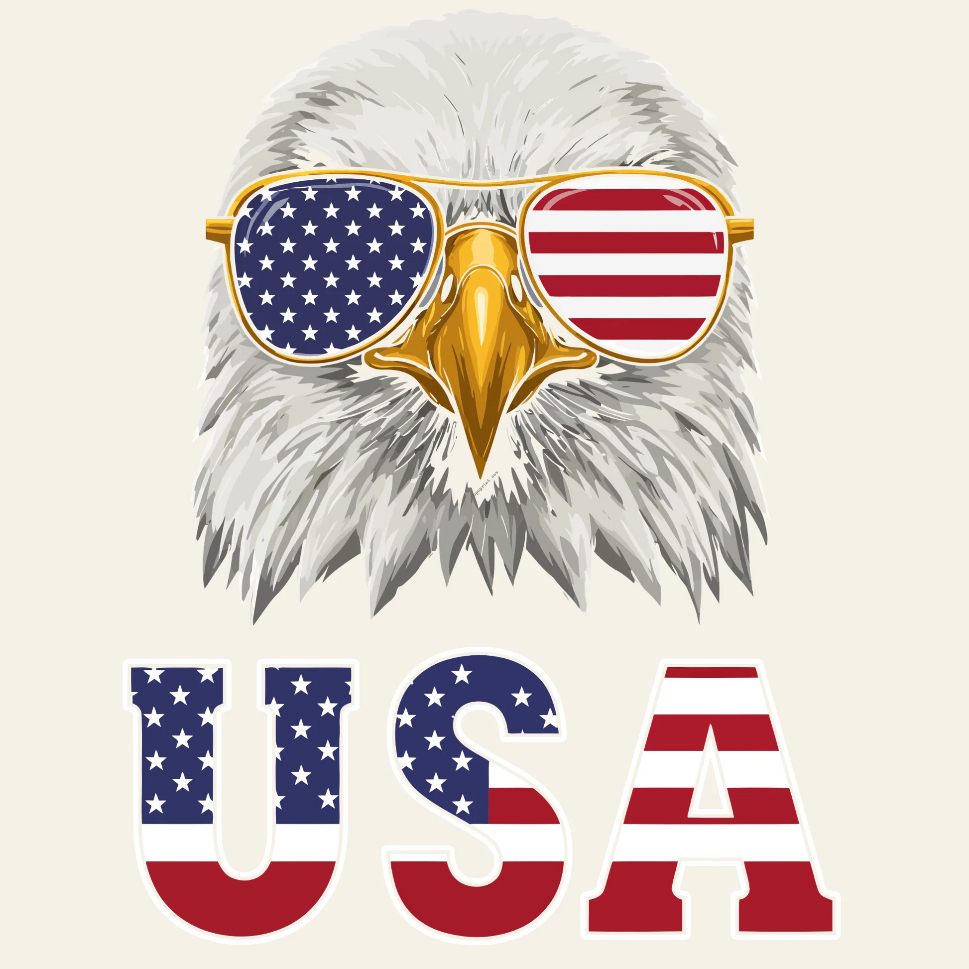 USA Eagle Design – American Bald Eagle with Flag Sunglasses & Patriotic Letters